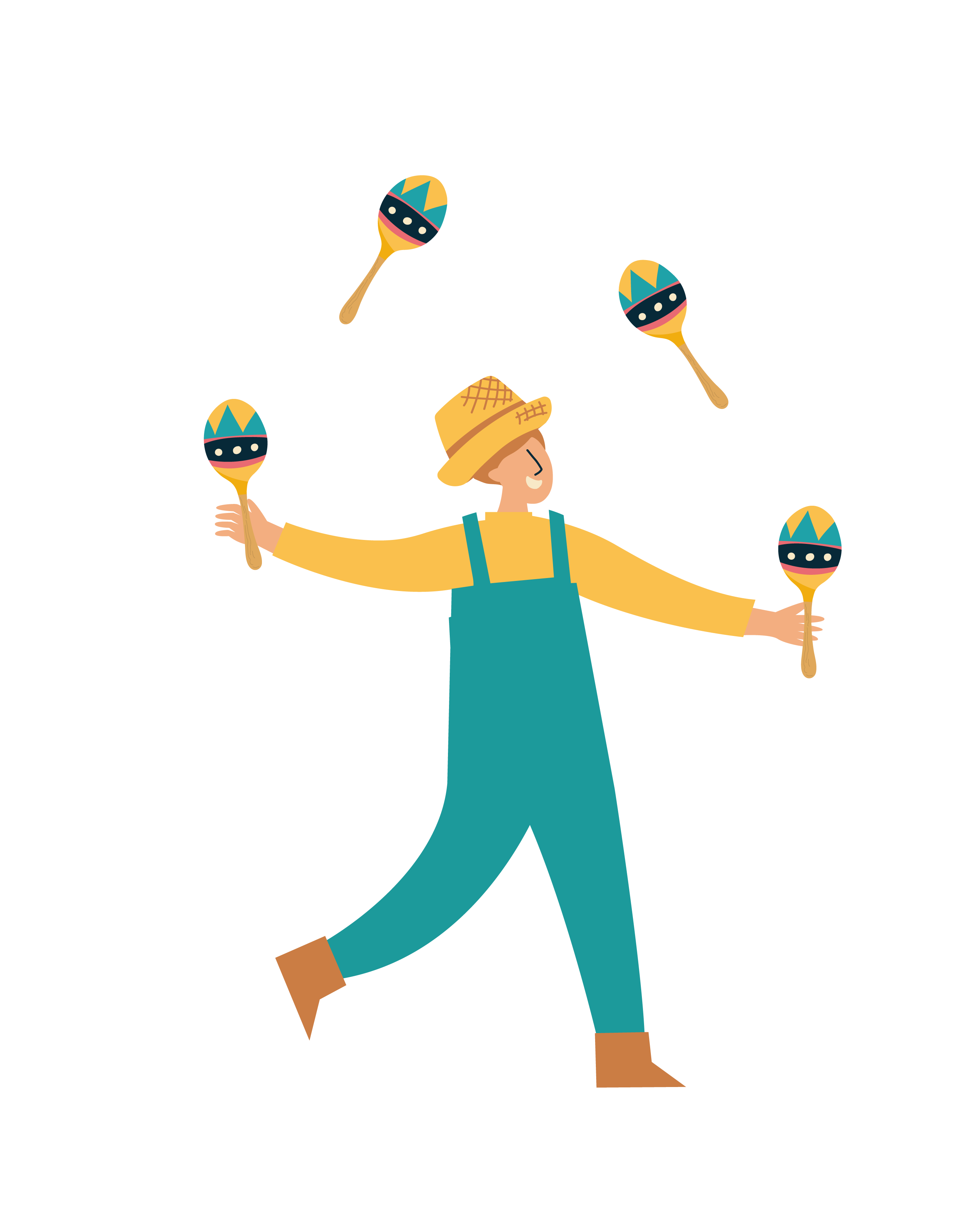 - 一套雜耍道具:三顆雜耍球、三條雜耍絲巾及一套轉碟